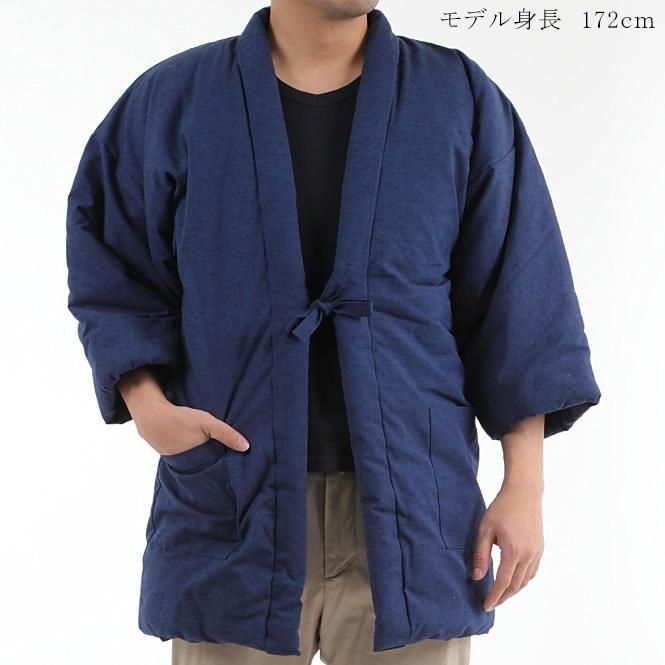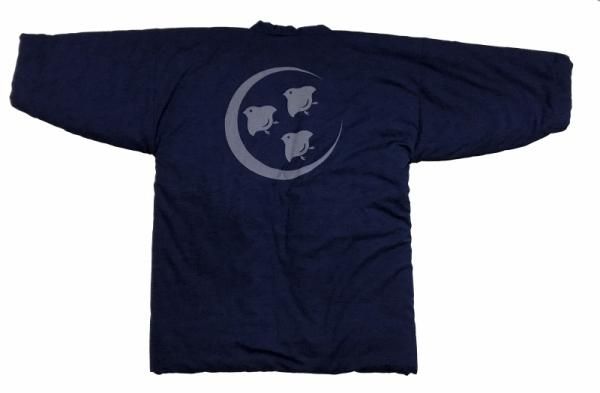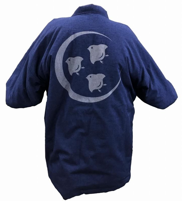 【日本製】江戸てんオリジナル!久留米手づくり綿入れ半纏(はんてん)抜染 (フリー, 三日月千鳥【青紺】)