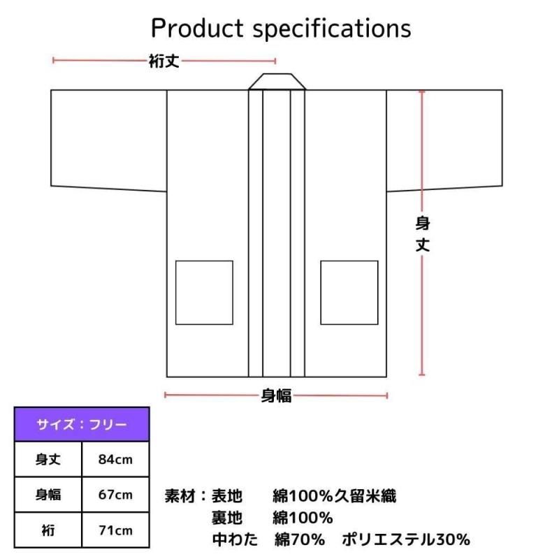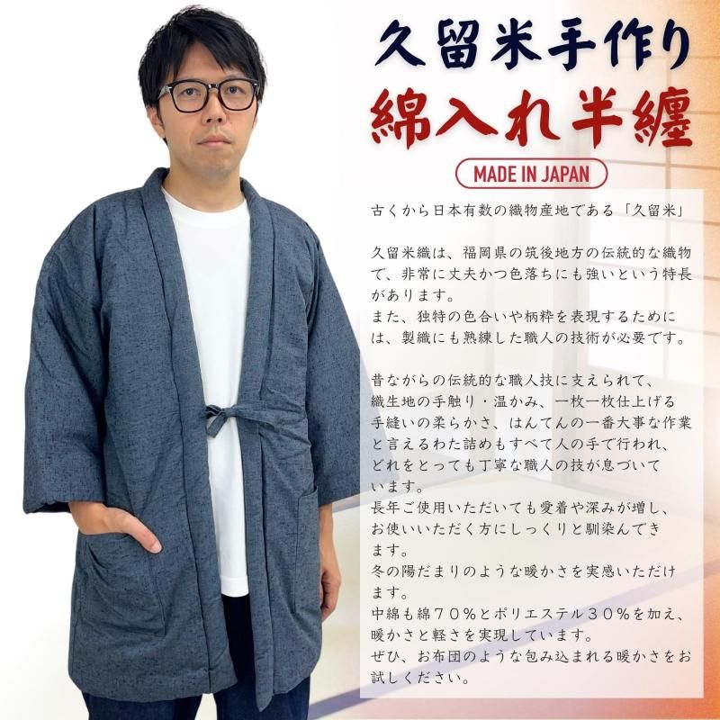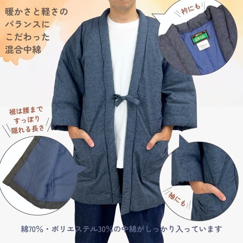 [江戸てん] はっぴ 刺子織生地 長半纏 袢纏 法被 羽織り 半着付 2WAY 帯付き 綿100% メンズ