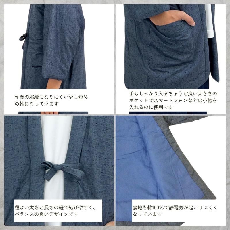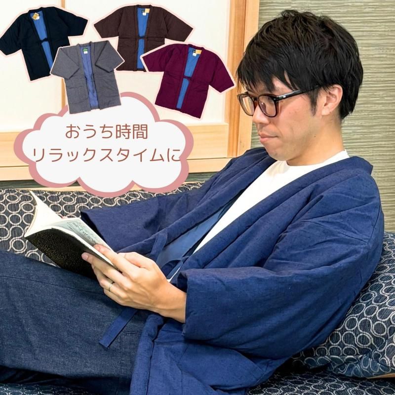 [江戸てん]羽織 着物 和風カーディガン 日本製 遠州木綿 ダンガリー生地 綿100% はっぴ 羽織コート メンズ レディース 黒/紺/生成り